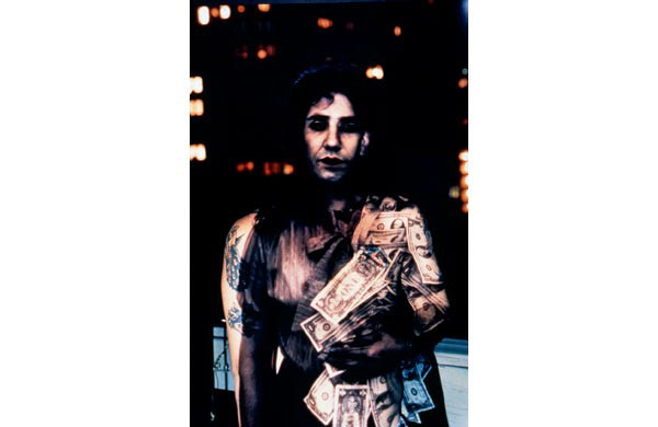The Immaculate Projections (series 1991 and 1994) for instance are an exploration of collective memory using art reproductions anamorphically projected over the figure and recorded on film, thereby creating a third dislocated, yet familiar character almost repulsive and like a B grade movie still, yet eerily beautiful, familiar and visually compelling. To further exploit this seductive photographic quality, the images have been printed with colour, specifically rich and detailed, but with soft backgrounds and lit as you would a film noir movie.
